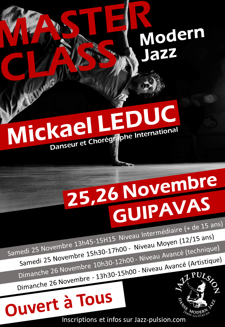 Master Class avec Mickaël Leduc 24, 25 et 26 Novembre 2017 Master Class avec Jeffrey Carter 9,10 et 11 Fevrier 2018 Spectacle : Ateliers de Guipavas 31 Mars 2018 Spectacle