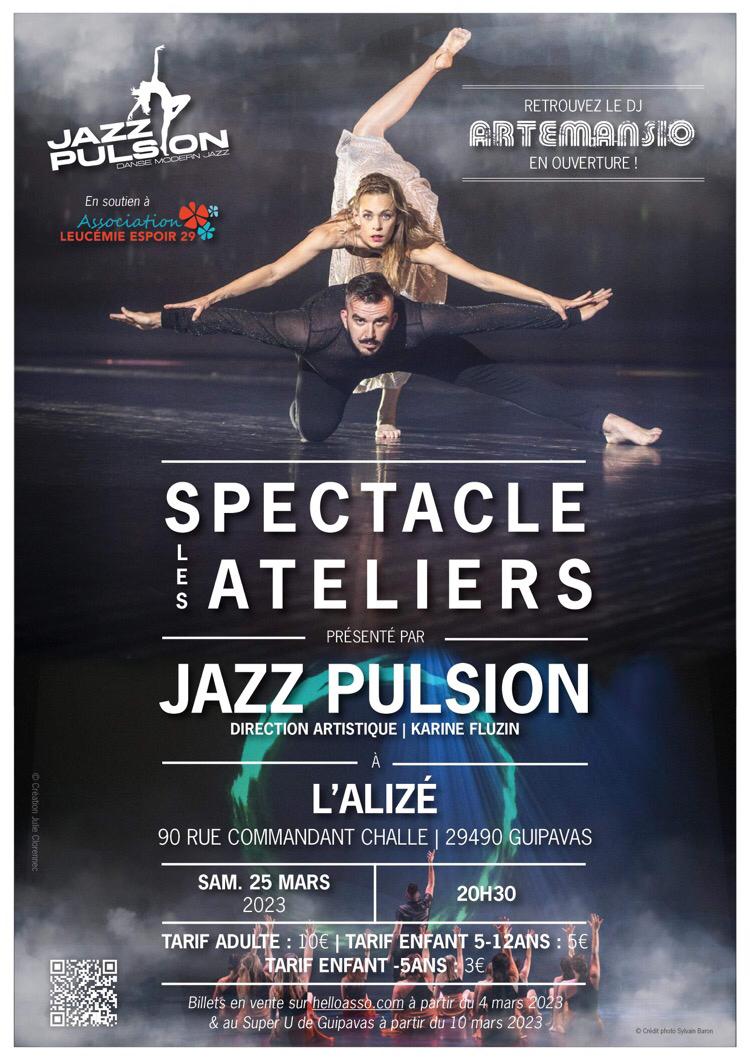 Spectacle des Ateliers 2023 – Guipavas 11 mars 2023 Les ateliers, Spectacle Jazz Pulsion est de retour sur scène ! Pour le plus grand plaisir de tous, nous revenons le 25 Mars à 20h30 sur la scène de l’Alizé à Guipavas pour Read More